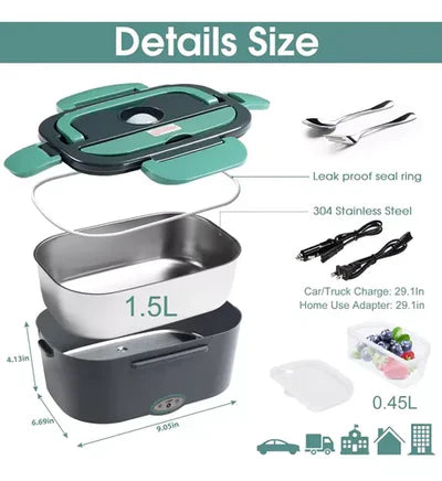 Es moderno, elegante, higiénico y anti-olores. Los compartimentos independientes evitan que la comida se mezcle. No tendrá que preocuparse por qué los olores y saberes se entremezclen. Gracias a su calentador rápido y de bajo consumo -de 40W- en unos 10 minutos tendrás su comida lista para mmm ñam ñam.