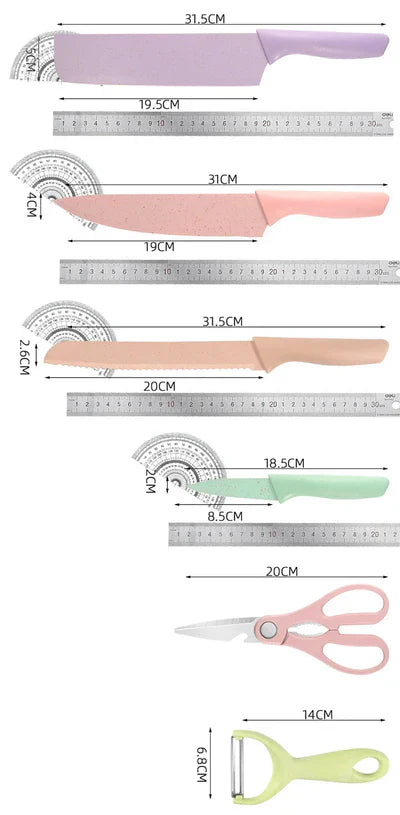 ESPECTACULAR JUEGO DE CUCHILLOS EN ACERO INXIDABLE PARA COCINA, A COLOR X 6 UNID